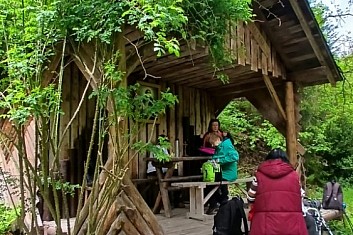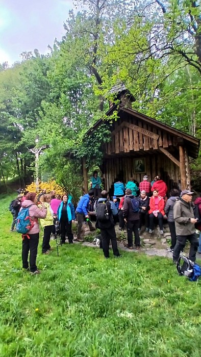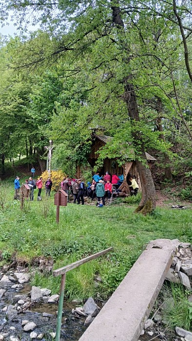 Po prohlídce se skupina, která šla delší trasu vydala přímo ze Štablovic na trasu přes Filipovice do Melče, k zámku. Ti, kteří šli kratší trasu odjeli autobusem do Radkova. Odtud jsme se vydali také do Melče, kde se obě skupiny potkaly. Cestou jsme narazili na pěkné zastavení u křížové cesty. Z Melče jsme vyjeli do Zálužné - Mokřinky, kde se nachází břidlicový důl s názvem Raabova štola. Návštěvnící se museli při návštěvě dolu střídat po 12. Bylo to sice zdlouhavé, ale ti, kteří důl navštívili určitě nelitovali. Zajímavé místo k návštěvě, dozvěděli jsme se například o způsobu dobývání břidlice a jejího dalšího použití. Tato štola je jednou z mnoha v okolí.